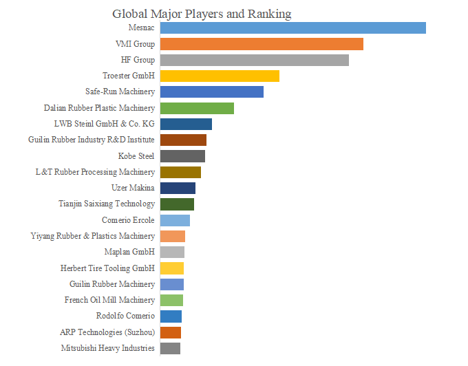 QYResearchのトップ企業研究センターによると、タイヤとゴム機械の世界的な主要製造業者には、Mesnac、VMI Group、HF Group、Troester GmbH、Safe-Run Machinery、Dalian Rubber Plastic Machinery、Guilin Rubber Industry R&D Institute、LWB Steinl GmbH & Co. KG、Kobe Steel、L&T Rubber Processing Machineryなどが含まれている。2024年、世界のトップ10企業は売上の観点から約52.0%の市場シェアを持っていた。