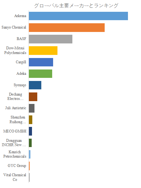 QYResearchのトップ企業研究センターによると、永久帯電防止剤の世界的な主要製造業者には、Arkema、Sanyo Chemical、BASF、Dow-Mitsui Polychemicals、Cargill、Adeka、Dechang Electrostatic Technology、Syensqo、Juli Antistatic、Shenzhen Ruihong Chemicalsなどが含まれている。2024年、世界のトップ10企業は売上の観点から約87.0%の市場シェアを持っていた。