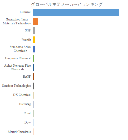 QYResearchのトップ企業研究センターによると、ポリアクリル酸系増粘剤の世界的な主要製造業者には、Lubrizol、Guangzhou Tinci Materials Technology、SNF、Evonik、Sumitomo Seika Chemicals、Uniproma Chemical、BASF、Anhui Newman Fine Chemicals、Sensient Technologies、DX Chemicalなどが含まれている。2024年、世界のトップ10企業は売上の観点から約79.0%の市場シェアを持っていた。