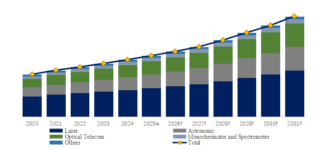 フォトニクス・量子技術の成長:集積フォトニック回路や量子研究における高精度光学部品の需要増加。