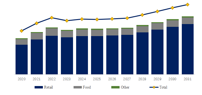 製品用途別では、現在小売が最大のセグメントであり、83.6%のシェアを占めています。