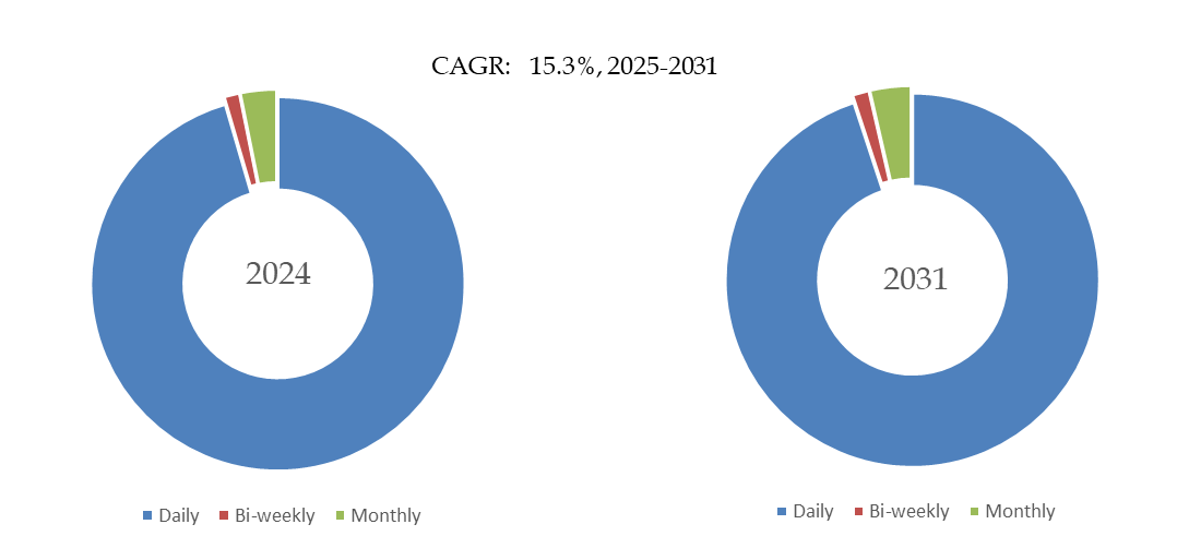 製品タイプ別では、現在デイリータイプが最大のセグメントを占め、95%のシェアを有している。
