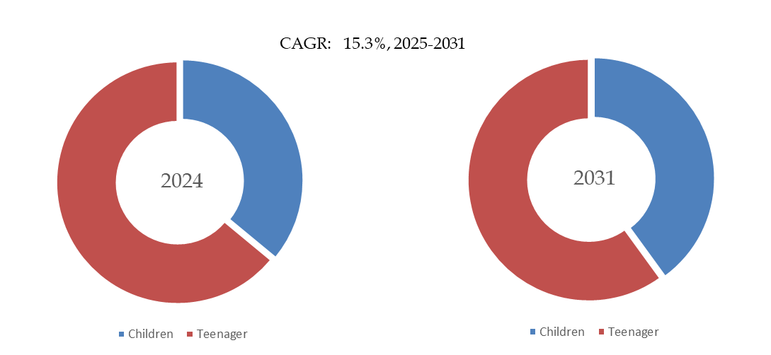 製品用途別では、現在ティーンエイジャーが最大のセグメントであり、64%のシェアを占めている。
