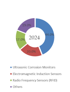 製品タイプ別では、現在超音波腐食モニターが最大のセグメントであり、44.0%のシェアを占めている。