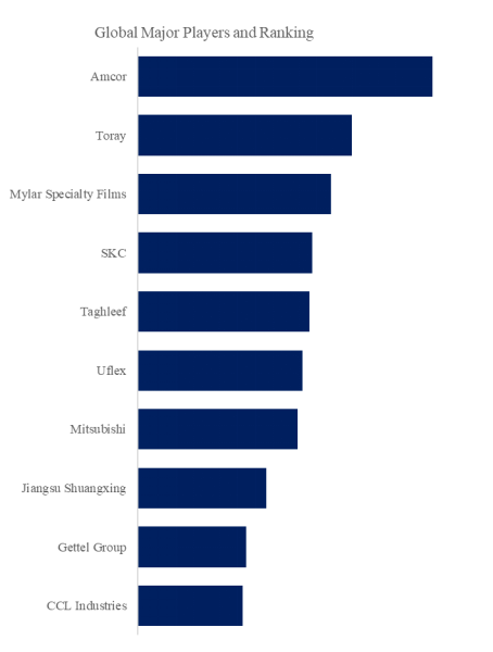 QYResearch主要企業調査センターによると、世界のプラスチックフィルム主要メーカーにはAmcor、Toray、Mylar Specialty Films、SKC、Taghleef、Uflex、三菱、江蘇双興、Gettel Group、CCL Industriesなどが含まれます。2024年、世界のトップ10企業は売上高ベースで約9.0%のシェアを占めました。