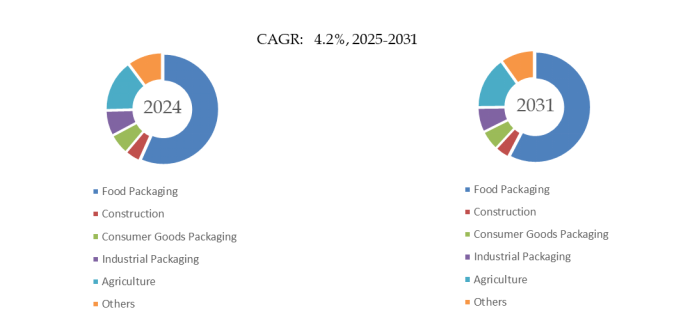 プラスチックフィルム、世界市場規模、用途セグメント別内訳
