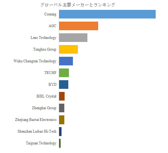 車両ガラスカバー市場には、Corning、AGC、Lens Technology、Tunghsu Group、Wuhu Changxin Technologyなど、グローバルに競争力を持つ主要メーカーが存在する。2024年には上位5社が売上ベースで約57.0%の市場シェアを保持しており、業界の寡占傾向が顕著である。これら企業は、高度なガラス加工技術、素材開発力、量産能力で優位性を確保しており、新規参入企業にとっては高い参入障壁となる。また、BYDやZhenghai Group、Zhejiang Baotai Electronicsといった自動車メーカー系列やエレクトロニクス系企業も生産に参入しており、技術の多様化と連携戦略が業界競争のカギである。製造業者間の差別化は製品品質だけでなく、開発速度や供給安定性にも依存する。