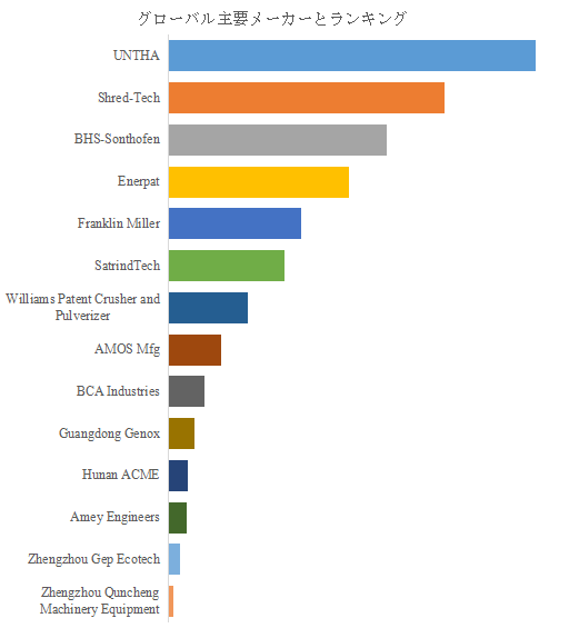 競争環境においては、上位5社が世界市場の約3/4を占める寡占構造を形成しており、高信頼性と安全設計を武器にプレミアムセグメントを維持している。一方で、リサイクル政策の進展に伴い、新興企業の参入も相次ぎ、中小メーカーによるモジュール化装置や小型分散型粉砕システムの開発も活発である。これにより、市場は「高性能集中型」と「低コスト分散型」の二極構造へと移行しつつある。