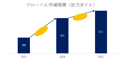 市場規模:CAGR0.3%、2032年に311百万米ドルへ成長