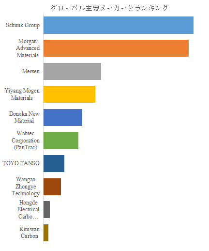 QYResearchのトップ企業研究センターによると、主要プレイヤーにはSchunk Group、Morgan Advanced Materials、Mersen、Yiyang Mogen Materials、Doneka New Material、Wabtec Corporation (PanTrac)、TOYO TANSOなどが名を連ねる。2025年時点で世界トップ5企業は売上の約67.0%を占め、市場の寡占的競争構造が鮮明となっている。グローバル大手企業は長年の技術蓄積とグローバルな販売ネットワークを強みとし、高品質製品の供給と総合的なサービスで競争優位性を確保している。一方、地域勢は価格競争力と地域市場への迅速な対応力を活かし、特定地域や中低グレード市場でシェアを獲得するなど、市場構造は多層的な様相を呈している。製品の信頼性と供給安定性が顧客選択の最大の要因となっており、企業間の差別化競争は技術開発と品質管理を中心に展开されている。