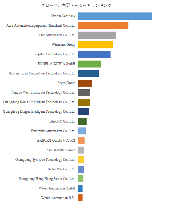 QYResearchのトップ企業研究センターによると、射出成形機用ロボットの世界的な主要製造業者には、Yushin Company、Aura Automation Equipment (Kunshan) Co., Ltd.、Star Automation Co., Ltd.、Wittmann Group、Topstar Technology Co., Ltd.、ENGEL AUSTRIA GmbH、Sepro Group、Haitian Smart Connection Technology Co., Ltd.、Ningbo Well-Lih Robot Technology Co., Ltd.、Guangdong Komas Intelligent Technology Co., Ltd.などが含まれている。2025年、世界のトップ10企業は売上の観点から約65.0%の市場シェアを持っていた。この構成は、成形機メーカーの周辺統合と独立系ロボット専業が同一市場で競合することを示す。欧州は成形機と自動化を一体提案しやすく、医療・包装など規格産業のライン設計力が差になりやすい。中国は需要の厚みと導入スピードを背景に、コスト最適と現地サービス網で浸透しやすく、景気の波に合わせた増設・更新が市場を形づくる。日本は高付加価値成形と工程の作り込みを前提に、停止ゼロ志向の安全・保全・標準化が評価されやすい。企業別には、上位勢は取出しの高速化よりも、検査・整列・箱詰めまで含むセル提案で単価と継続取引を伸ばし、追随勢は標準機の短納期供給と用途特化で導入障壁を下げる戦略が効きやすい。