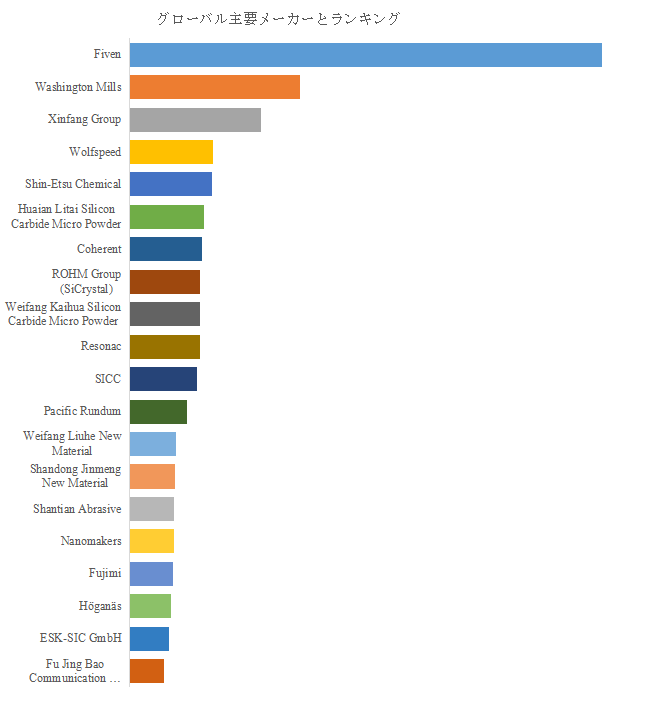 QYResearchトップ企業研究センターによると、主要プレイヤーにはFiven、WashingtonMills、XinfangGroup、Wolfspeed、Shin-EtsuChemical、HuaianLitaiSiliconCarbideMicroPowder、Coherent、ROHMGroup(SiCrystal)、WeifangKaihuaSiliconCarbideMicroPowder、Resonacなどが名を連ねる。2025年時点で世界トップ5企業は売上の約33.0%を占め、高純度化、微細化、量産安定性を軸に競争が激化している。グローバル大手は技術開発力とグローバル販売ネットワークを強みとし、一方で地域メーカーは価格競争力と地域市場への迅速な対応力でシェアを獲得しつつある。特定用途向けのカスタマイズ製品供給と総合的な技術サポートが、企業間の差別化ポイントとなっている。